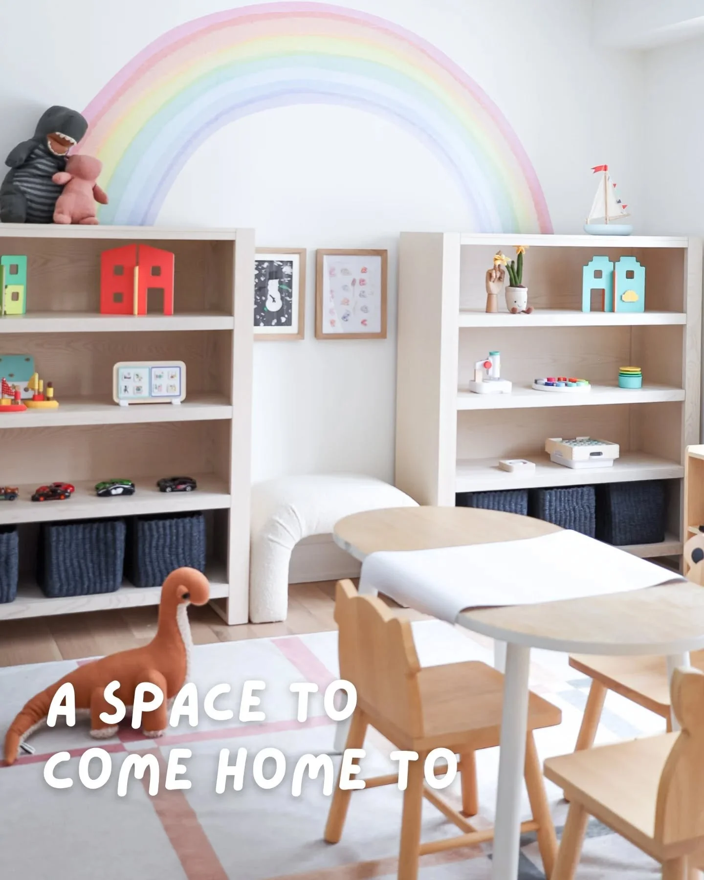 My unique approach blends Montessori principles with a splash of fresh modern aesthetic and real life practicality. These spaces are child-centered and promote independence, movement & wonder.